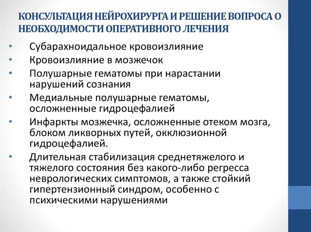 КОНСУЛЬТАЦИЯ НЕЙРОХИРУРГА И РЕШЕНИЕ ВОПРОСА ОНЕОБХОДИМОСТИ ОПЕРАТИВНОГО ЛЕЧЕНИЯ