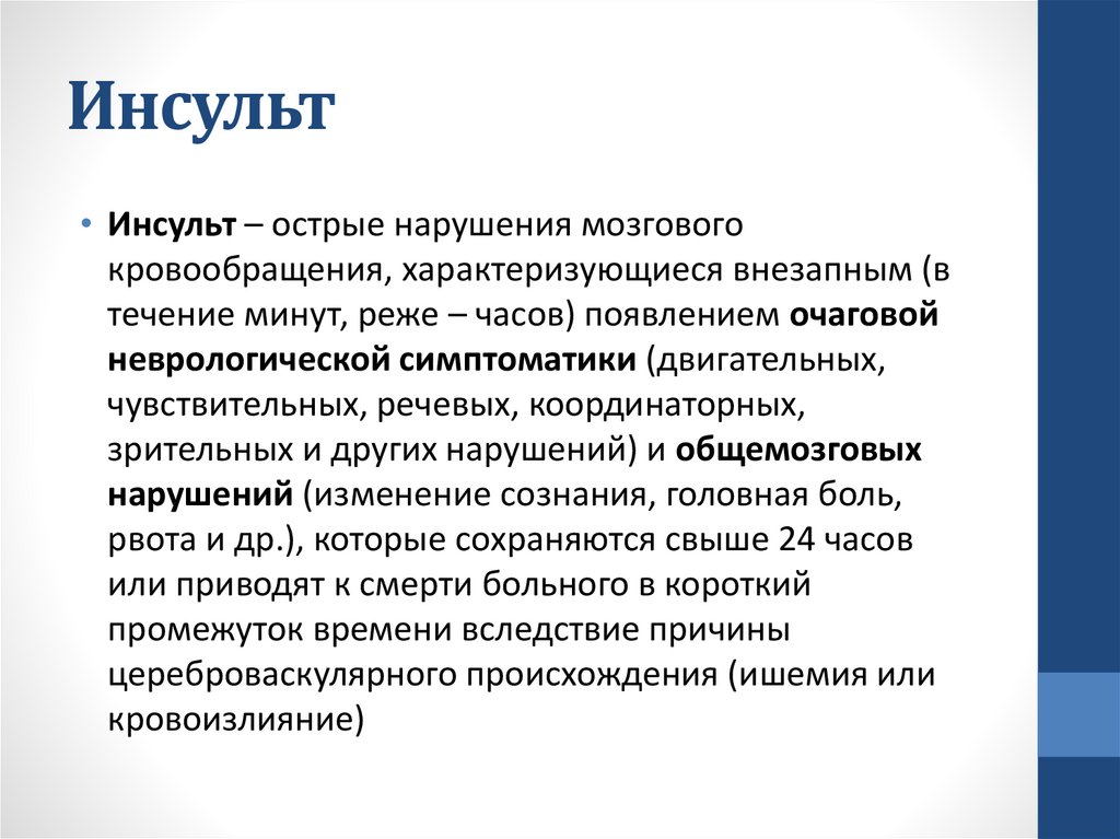 ИНСУЛЬТ ЭТО:1. Неполная потеря сознания