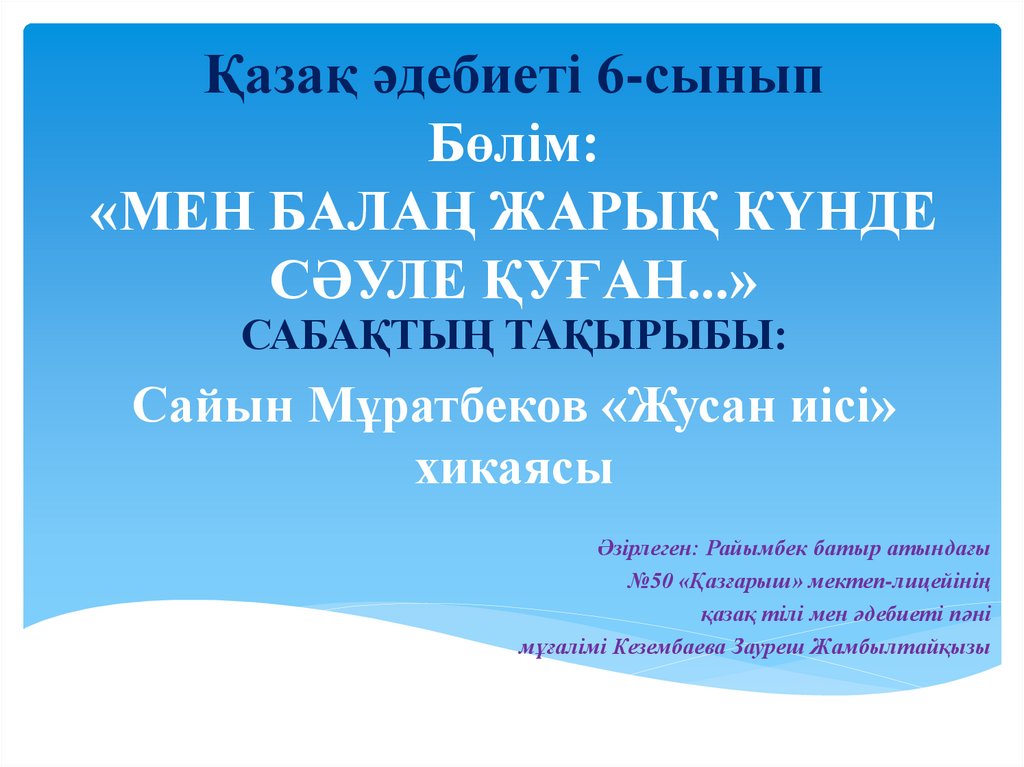 САБАҚТЫҢ ТАҚЫРЫБЫ: