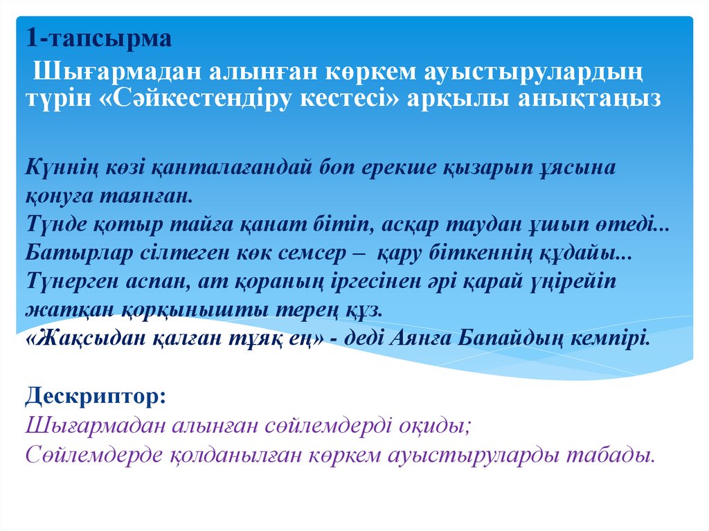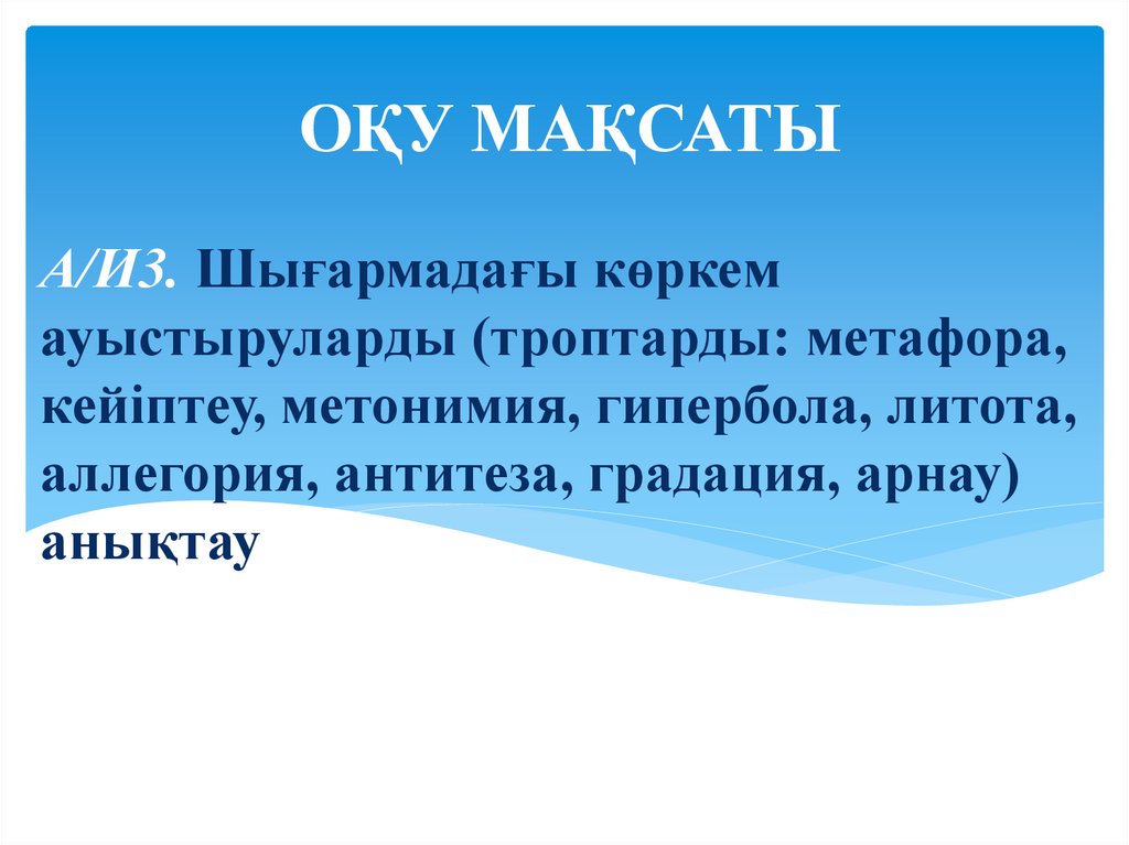 ОҚУ МАҚСАТЫА/И3. Шығармадағы көркем