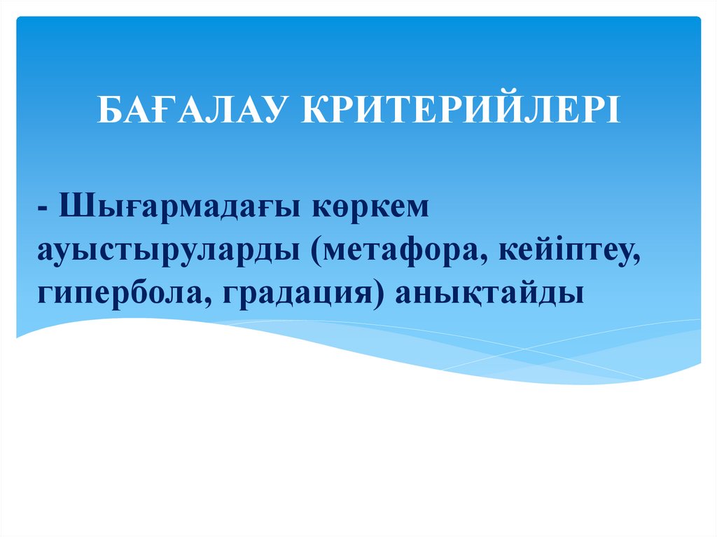 БАҒАЛАУ КРИТЕРИЙЛЕРІ- Шығармадағы көркем