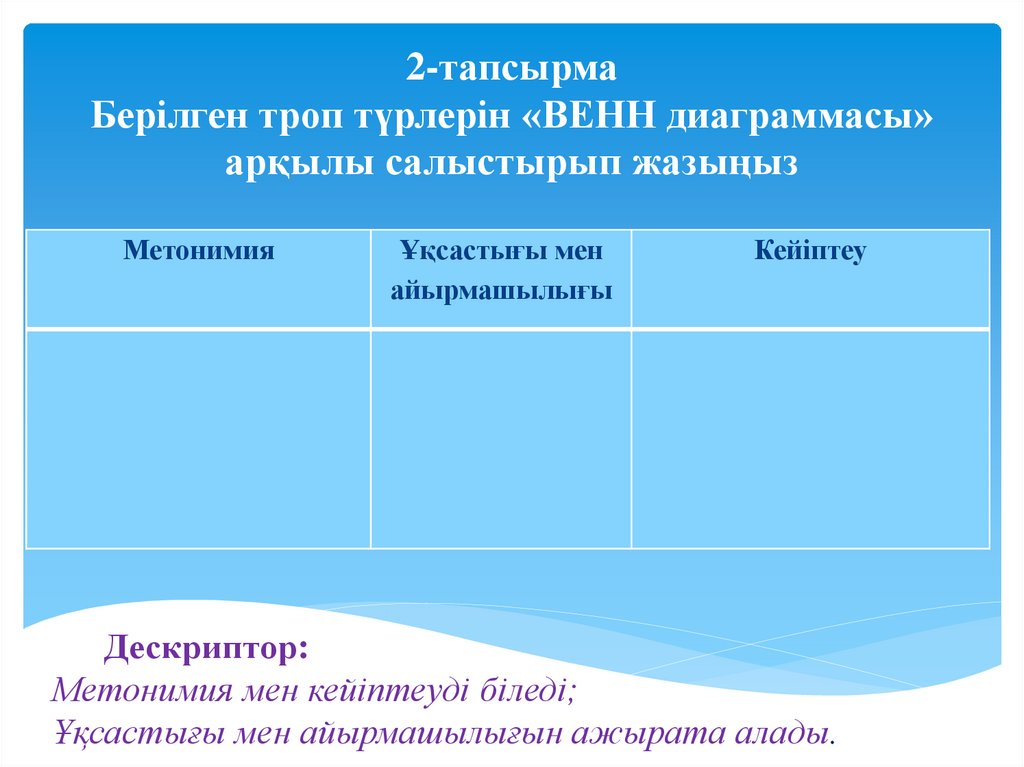 2-тапсырмаБерілген троп түрлерін «ВЕНН диаграммасы»