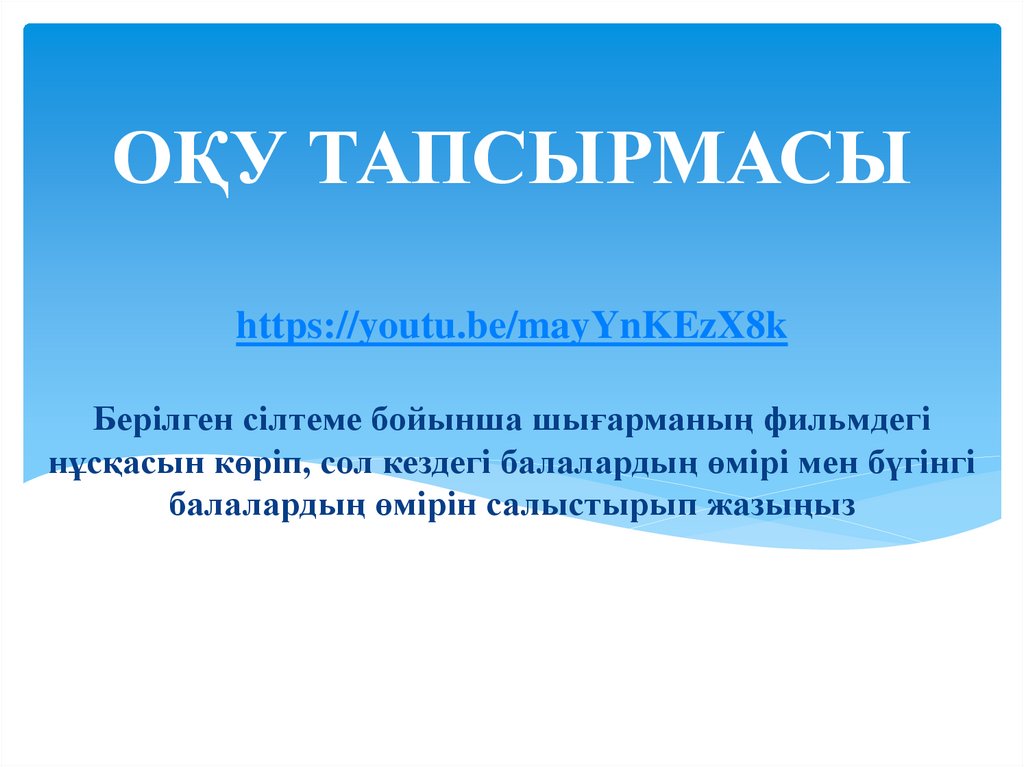 ОҚУ ТАПСЫРМАСЫhttps://youtu.be/mayYnKEzX8k