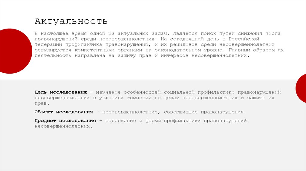 Цель исследования – изучение особенностей социальной профилактики правонарушений