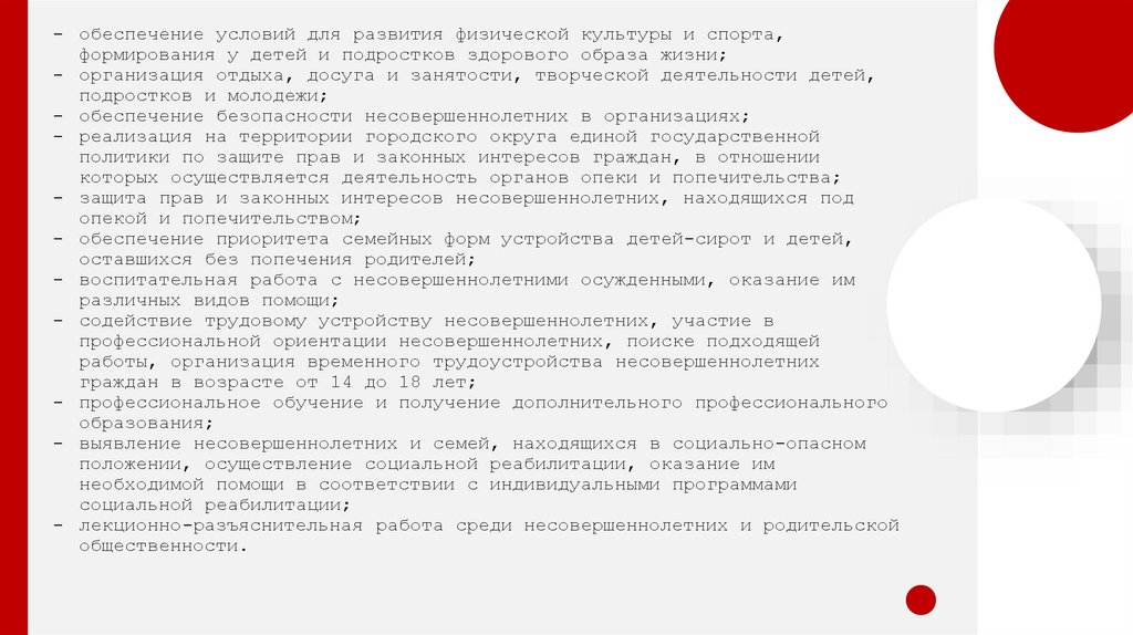 деятельность направлена на защиту прав и интересов несовершеннолетних.