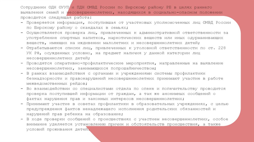 - Выявление и устранение причин и условий, способствующих безнадзорности, беспризорности и