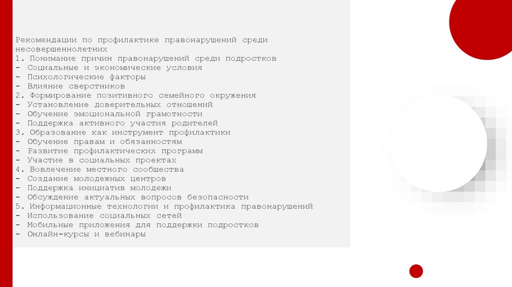 Рекомендации по профилактике правонарушений срединесовершеннолетних