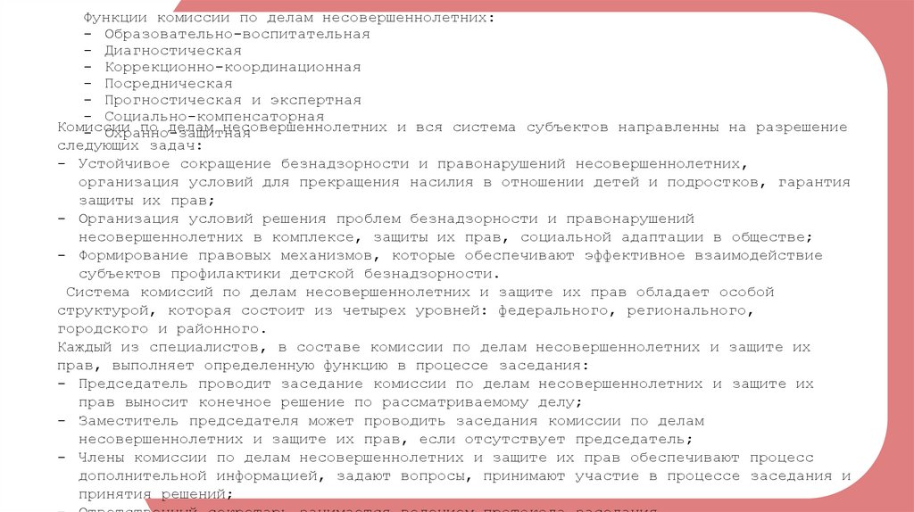 Деятельность комиссии по делам несовершеннолетних и защите их прав по профилактике и правонарушений несовершеннолетних