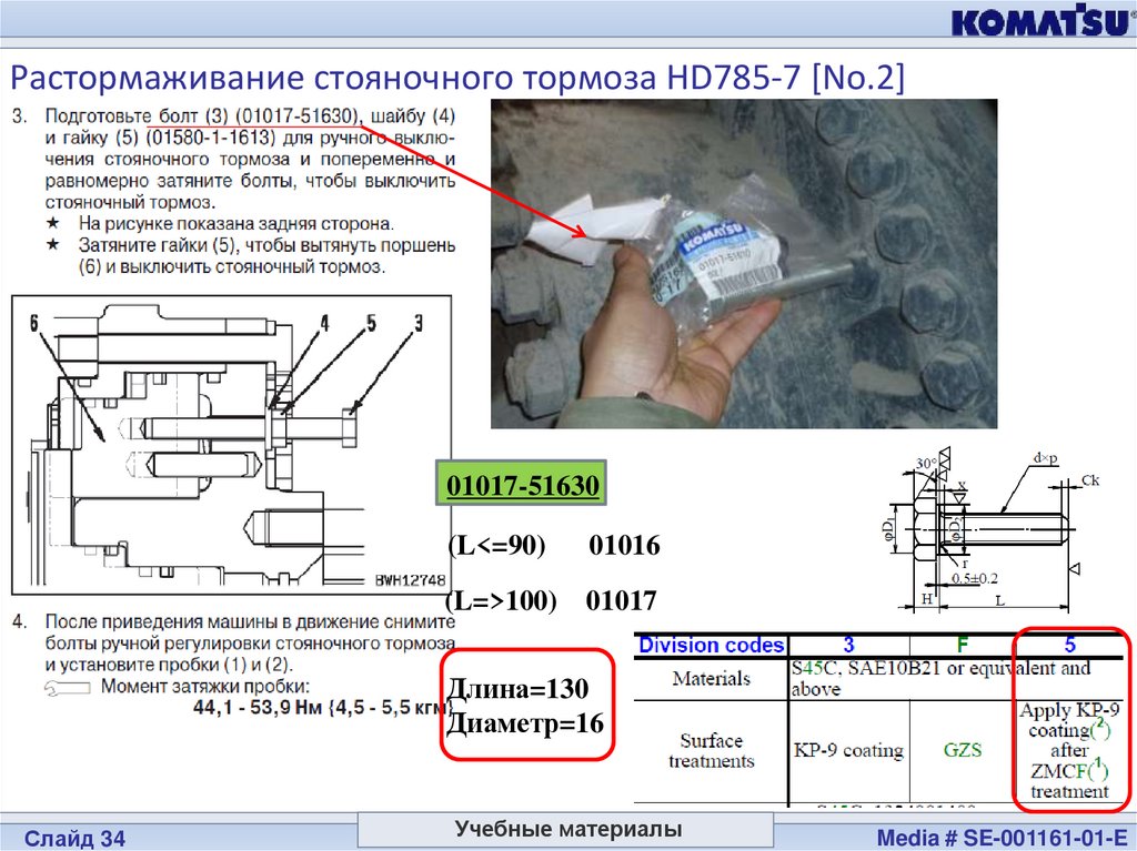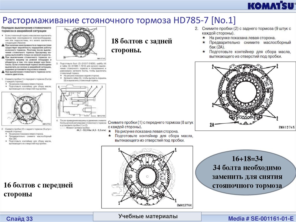 Растормаживание стояночного тормоза HD785-7 [No.1]18 болтов с задней