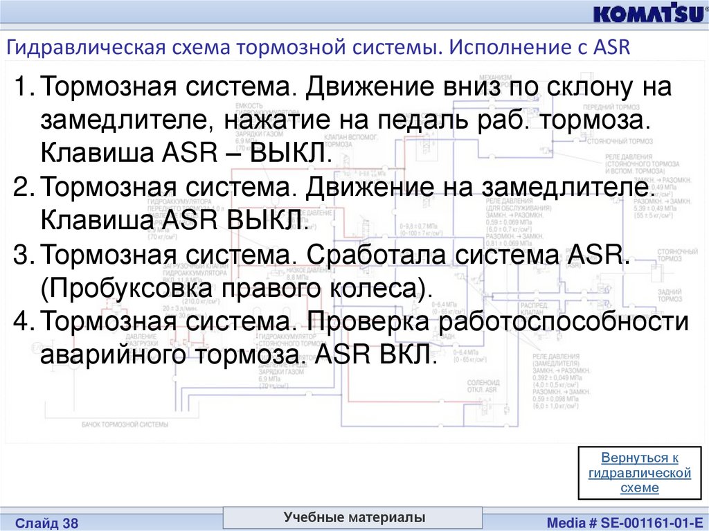 Гидравлическая схема тормозной системы. Исполнение с ASR1. Тормозная система. Движение вниз по склону на