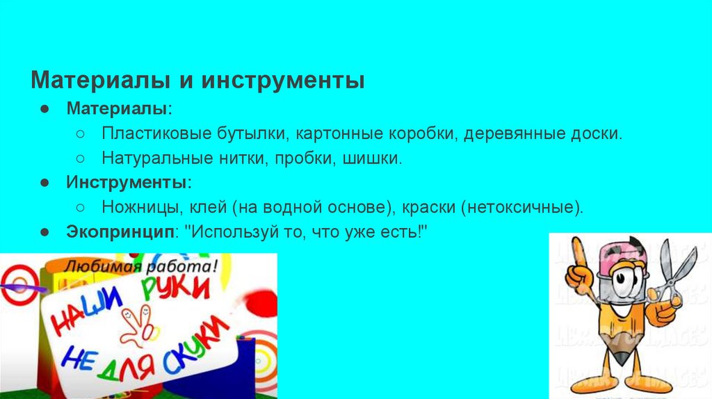 ○ Пластиковые бутылки, картонные коробки, деревянные доски.
