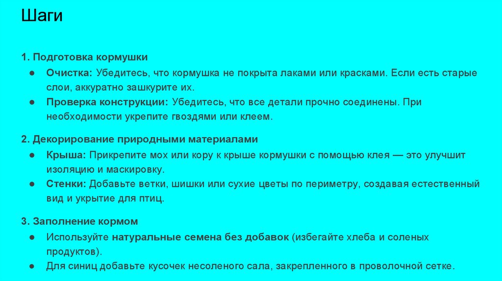 Очистка: Убедитесь, что кормушка не покрыта лаками или красками. Если есть старые