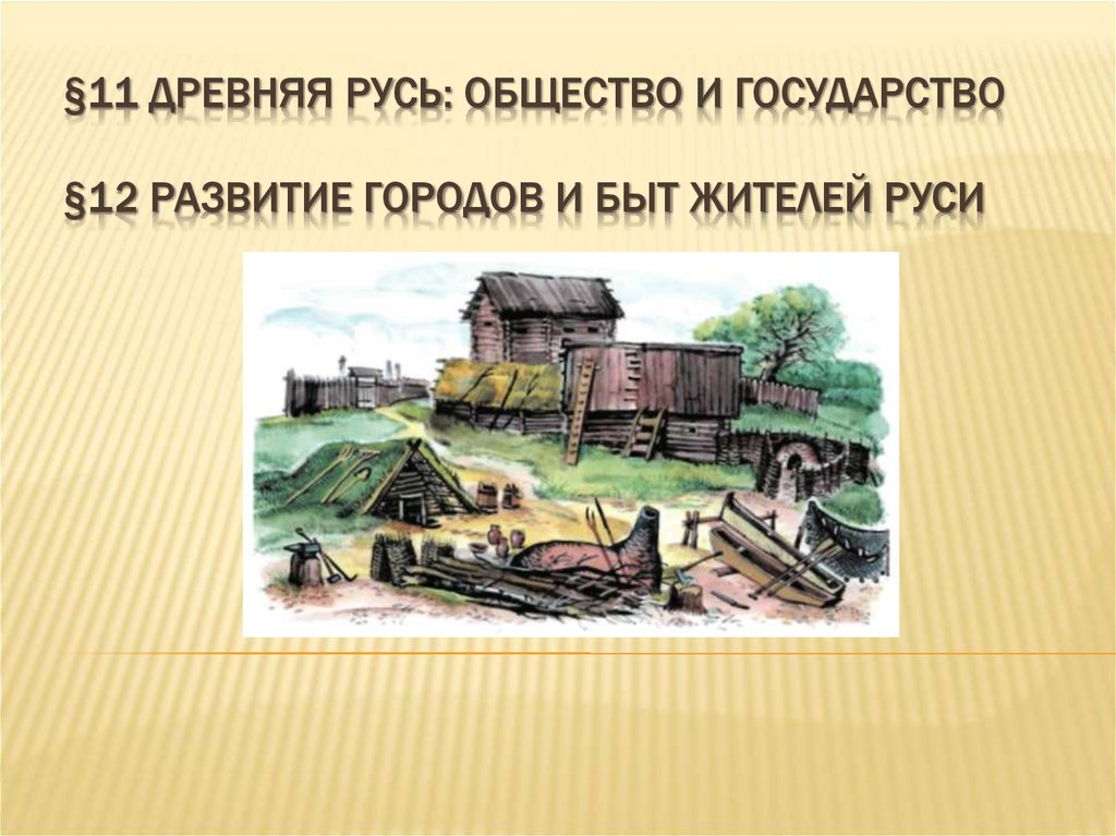 1. §11 Древняя РУСЬ: ОБЩЕСТВО И ГоСУдарство §12 РАЗВИТИЕ ГОРОДОВ И БЫТ ЖИТЕЛЕЙ РУСИ