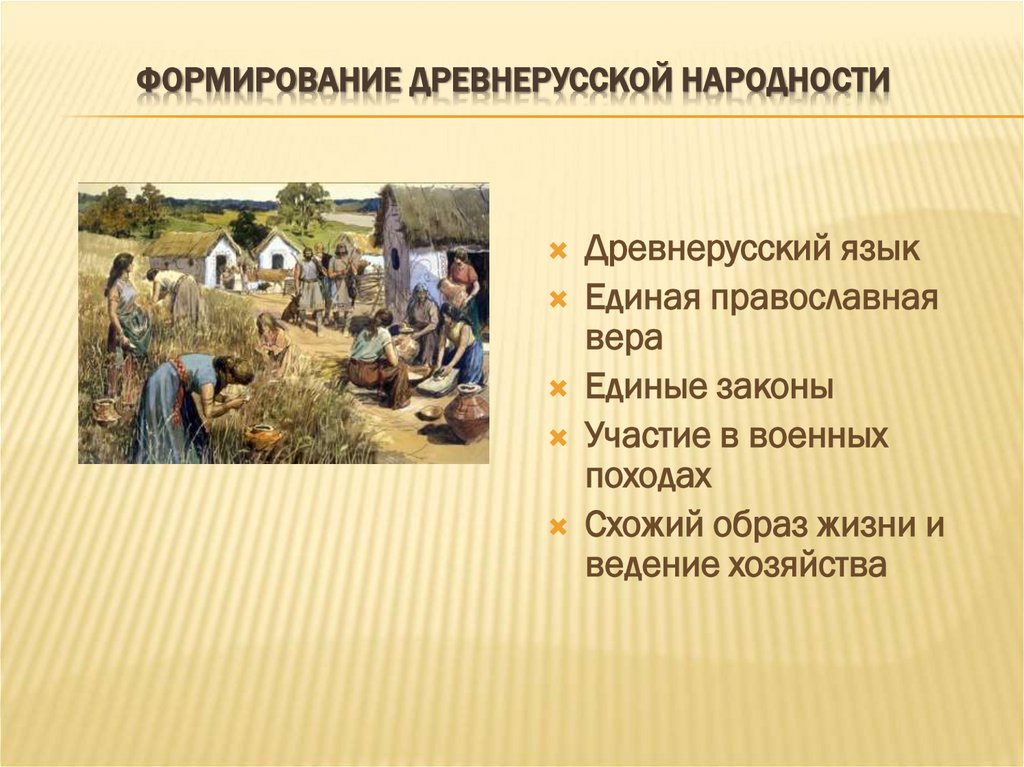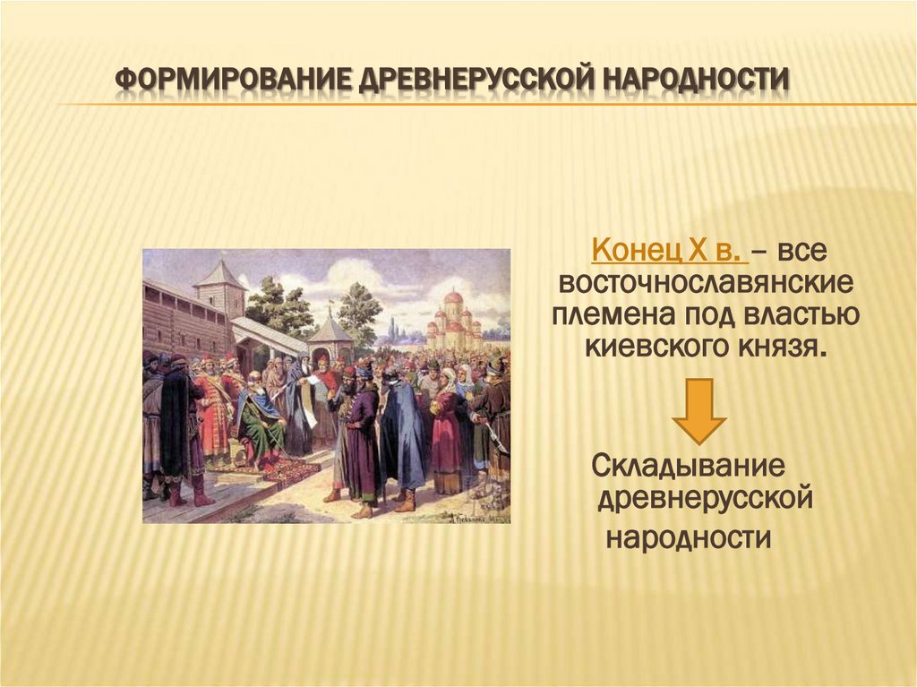 ФОРМИРОВАНИЕ ДРЕВНЕРУССКОЙ НАРОДНОСТИКонец X в. – все