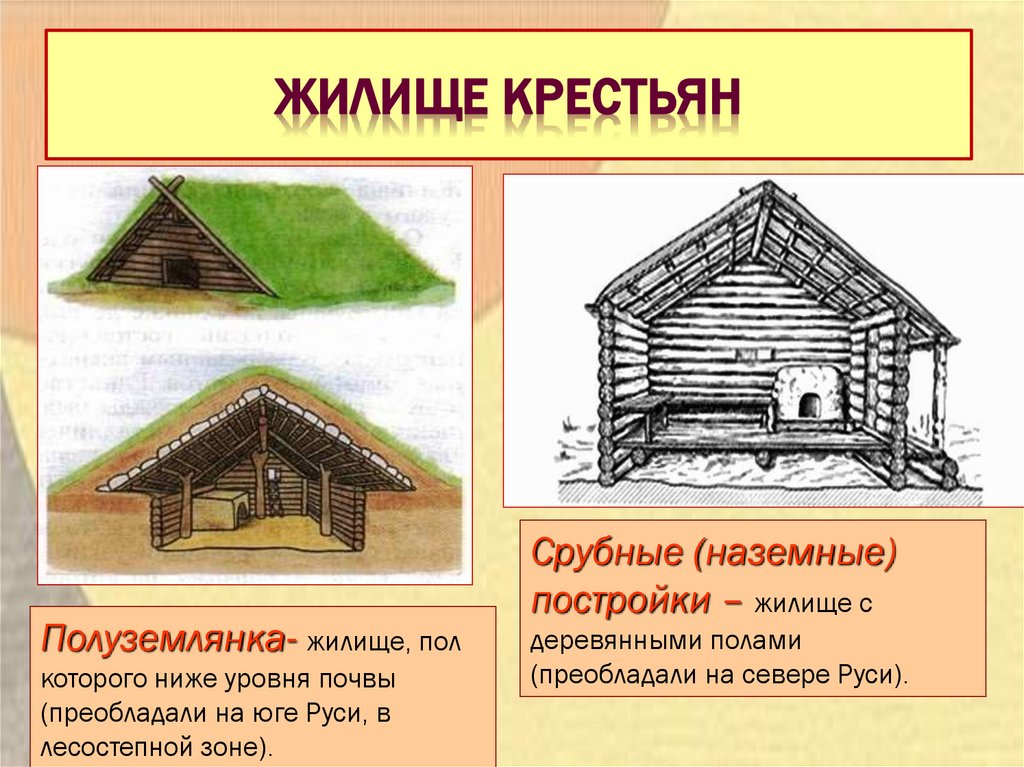 ЖИЛИЩЕ КРЕСТЬЯНПолуземлянка- жилище, пол
