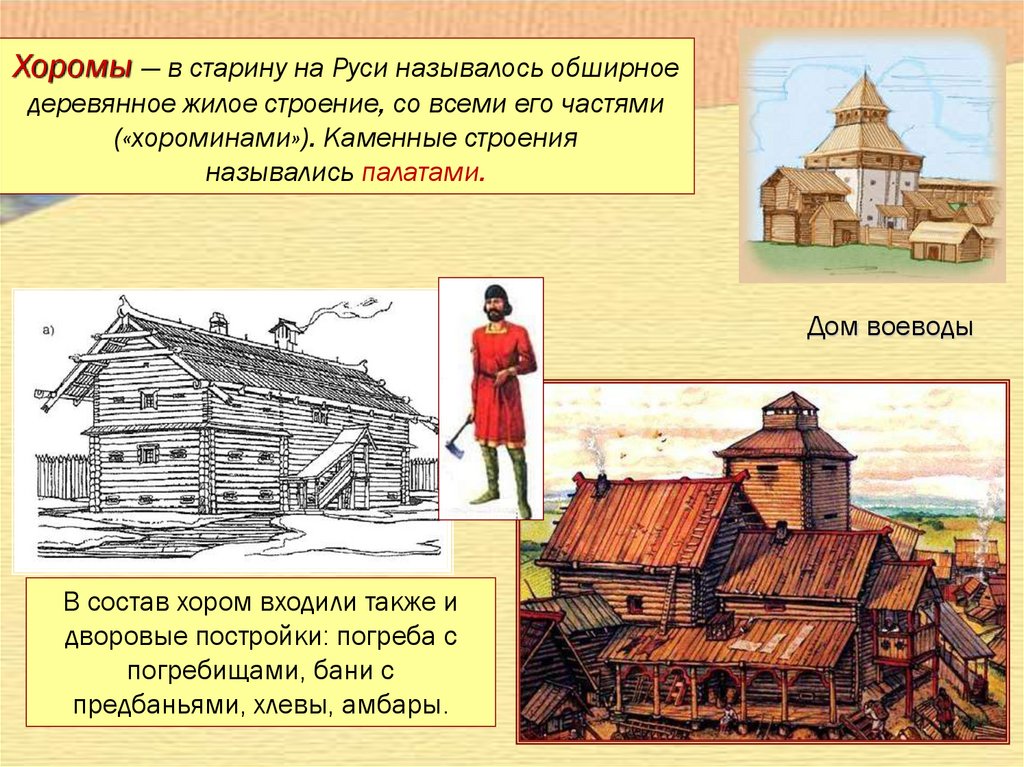 Хоромы — в старину на Руси называлось обширноедеревянное жилое строение, со всеми его частями