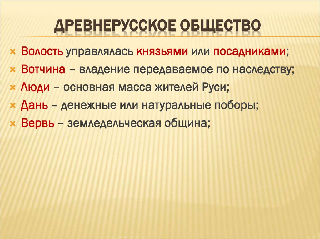ДРЕВНЕРУССКОЕ ОБЩЕСТВОВолость управлялась князьями или посадниками;