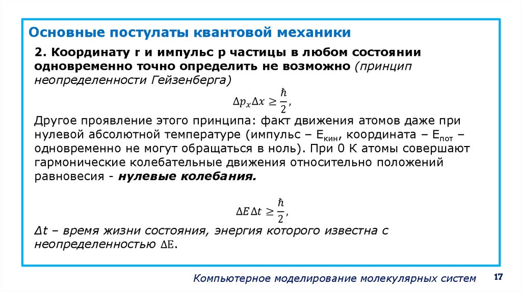 Квантовая механика – основа квантовой химииКвантовая механика – это физическая теория, описывающая движение и