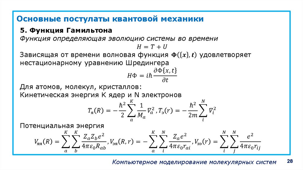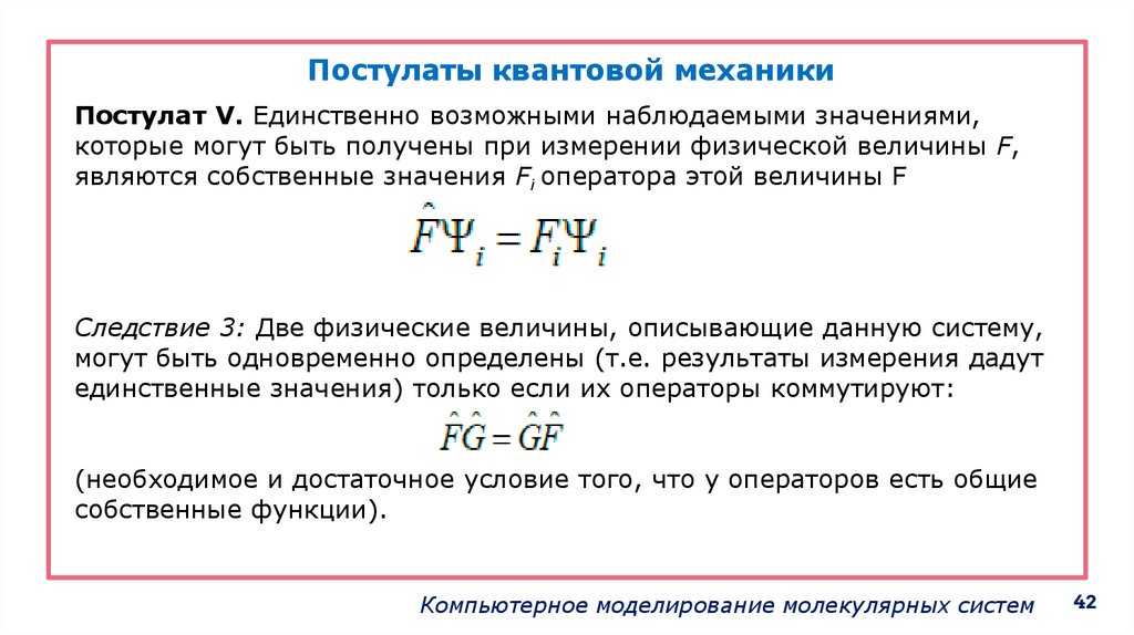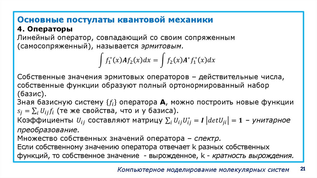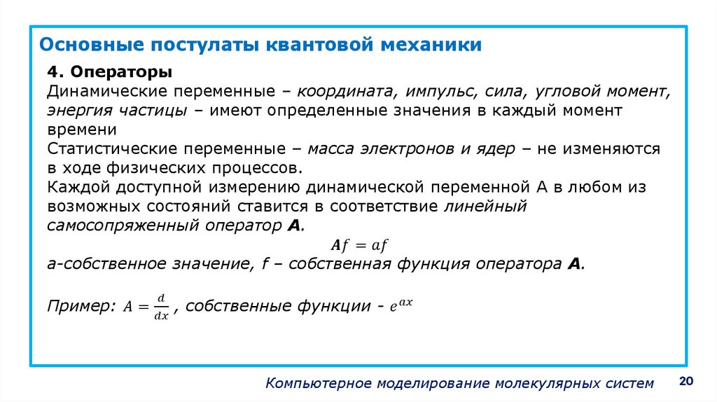 Основные постулаты квантовой механики1. Поведение системы описывается в терминах понятий,
