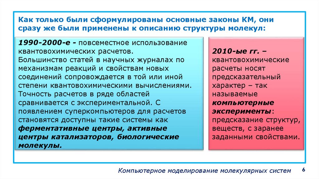 Как только были сформулированы основные законы КМ, онисразу же были применены к описанию структуры молекул: