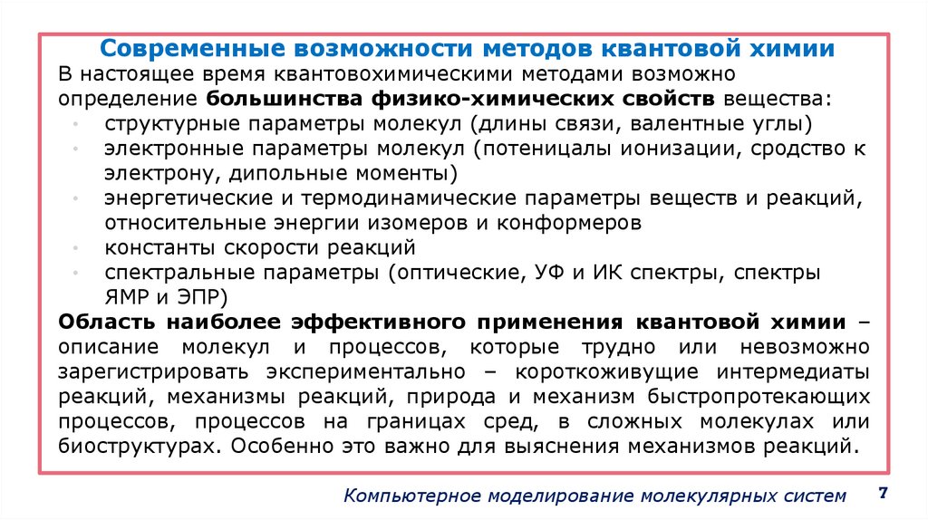 Современные возможности методов квантовой химииВ настоящее время квантовохимическими методами возможно