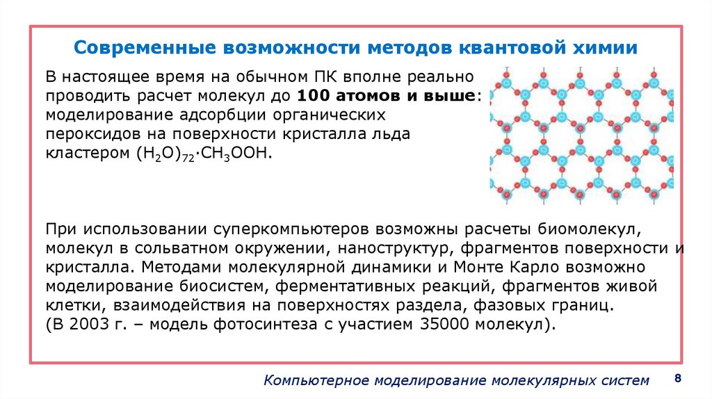 Современные возможности методов квантовой химииВ настоящее время на обычном ПК вполне реально