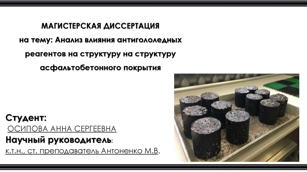 МАГИСТЕРСКАЯ ДИССЕРТАЦИЯна тему: Анализ влияния антигололедных