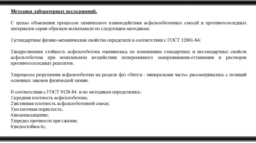 2)коррозионная стойкость асфальтобетона оценивалась по изменениям стандартных и нестандартных свойств