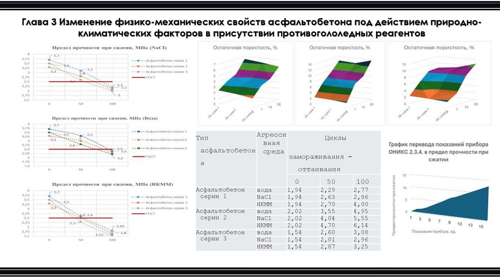 Глава 3 Изменение физико-механических свойств асфальтобетона под действием природноклиматических факторов в присутствии противогололедных реагентовАгресси