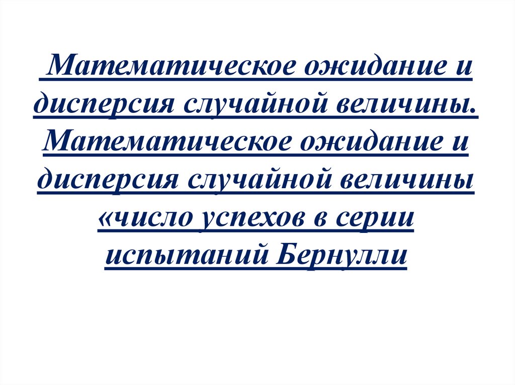 Математическое ожидание и дисперсия случайной величины «число успехов в серии испытаний Бернулли