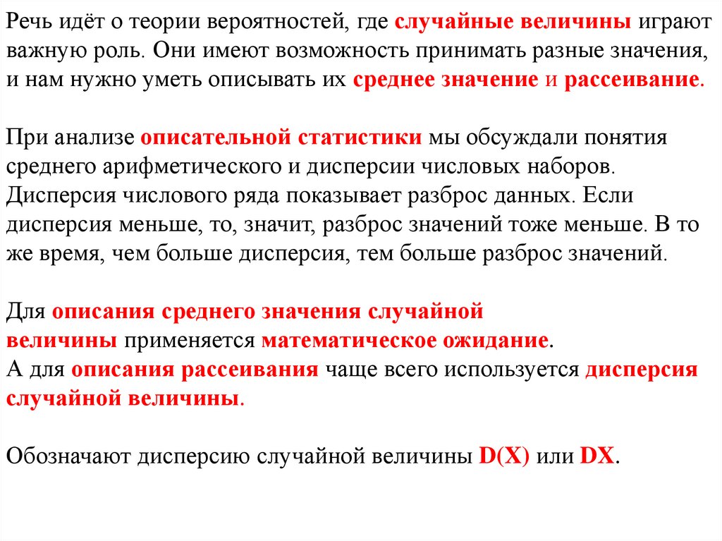 Это связано с тем, что значения случайной величины и её
