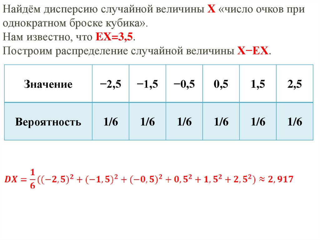 дисперсии величины X, вычисли её.