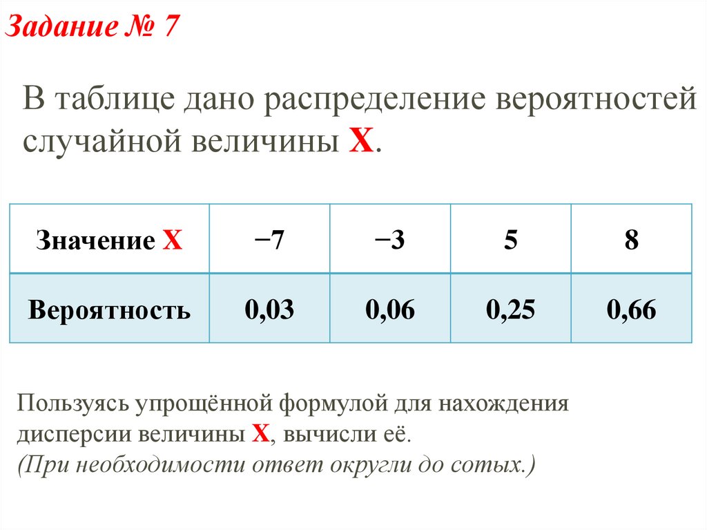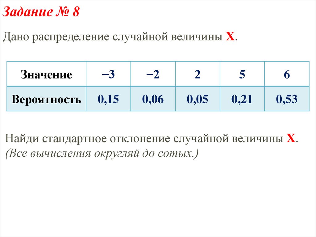Задание № 8Дано распределение случайной величины X.