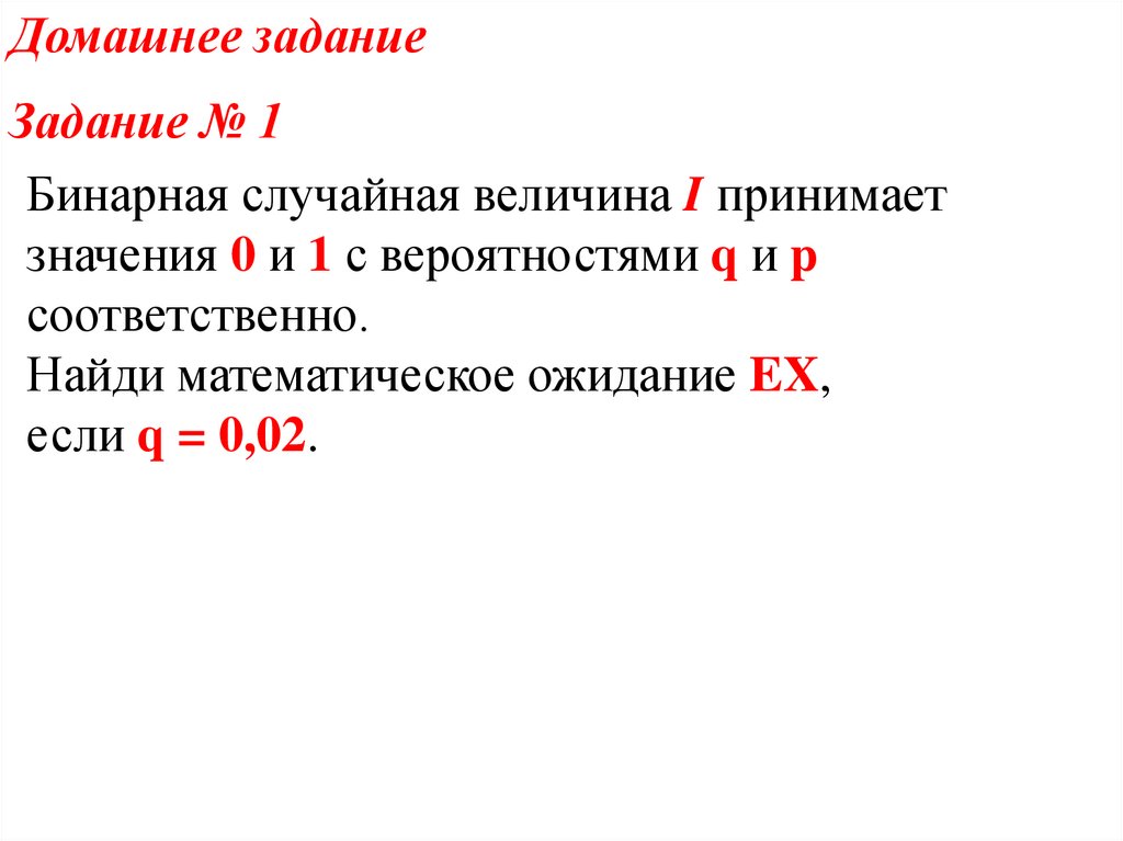 Задание № 1Бинарная случайная величина I принимает