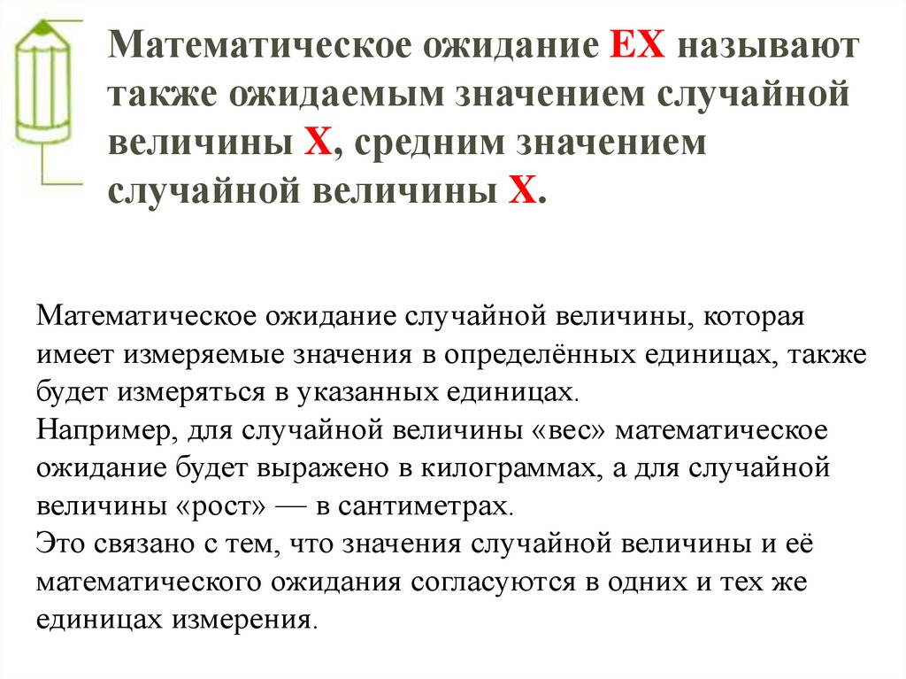 Например, для случайной величины «вес» математическое
