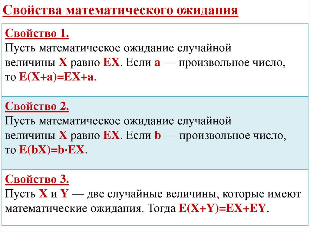 Математическое ожидание EX называюттакже ожидаемым значением случайной