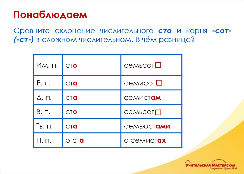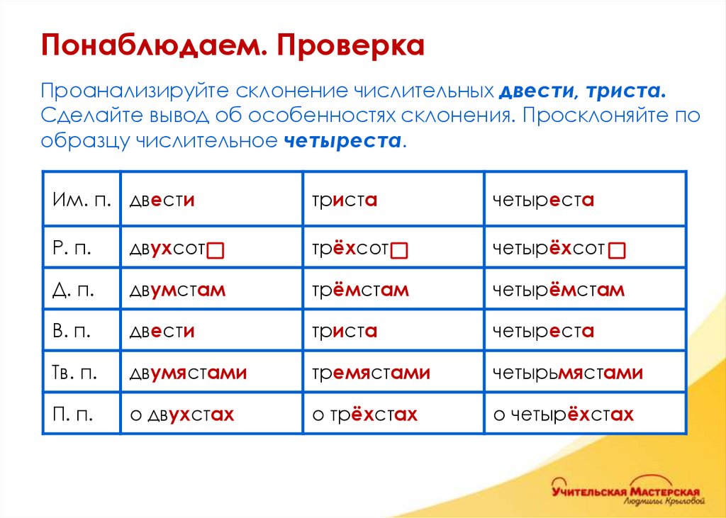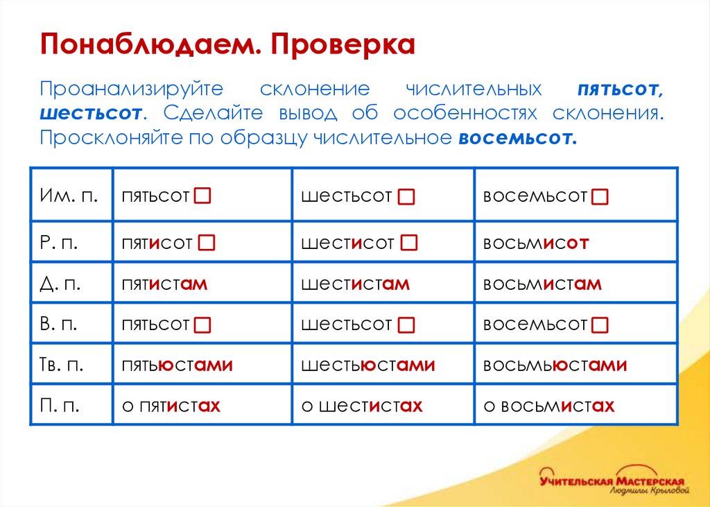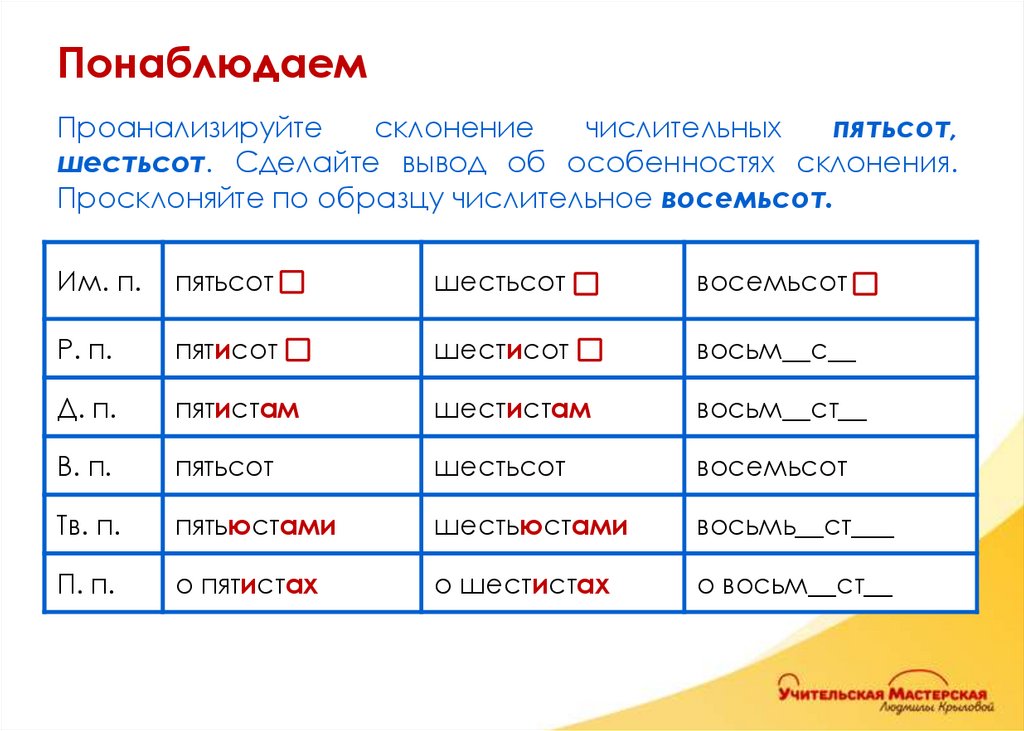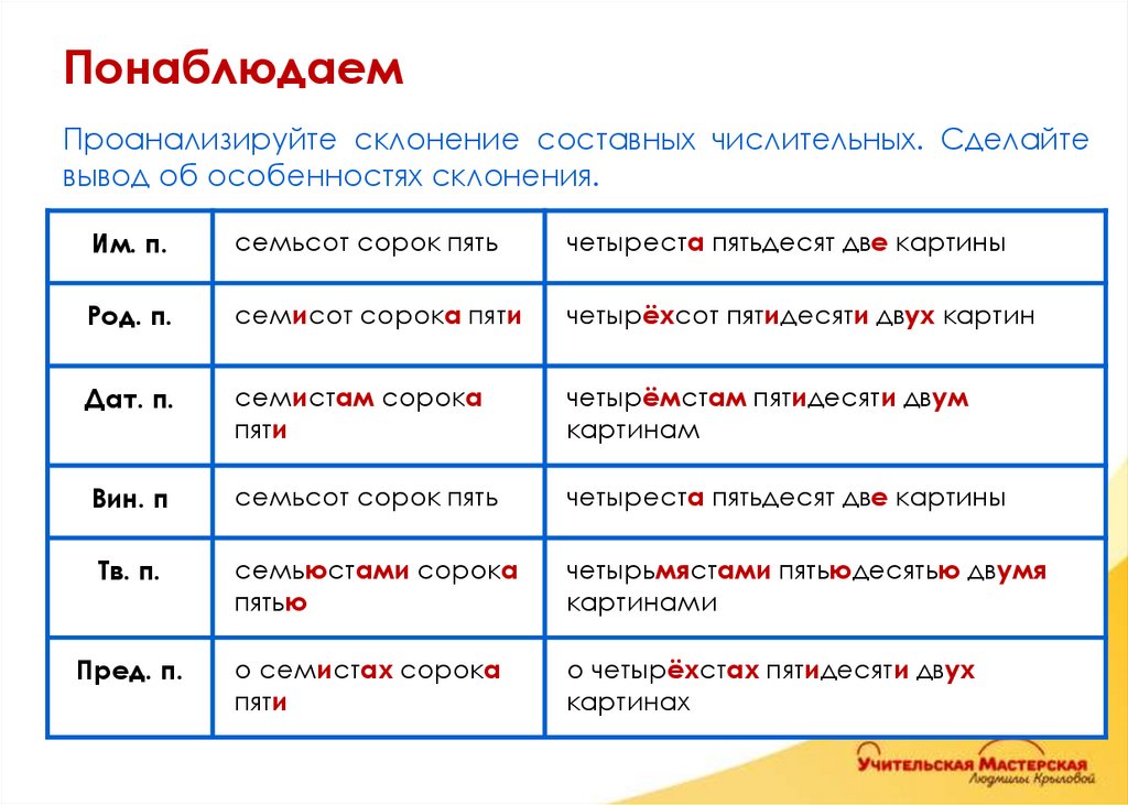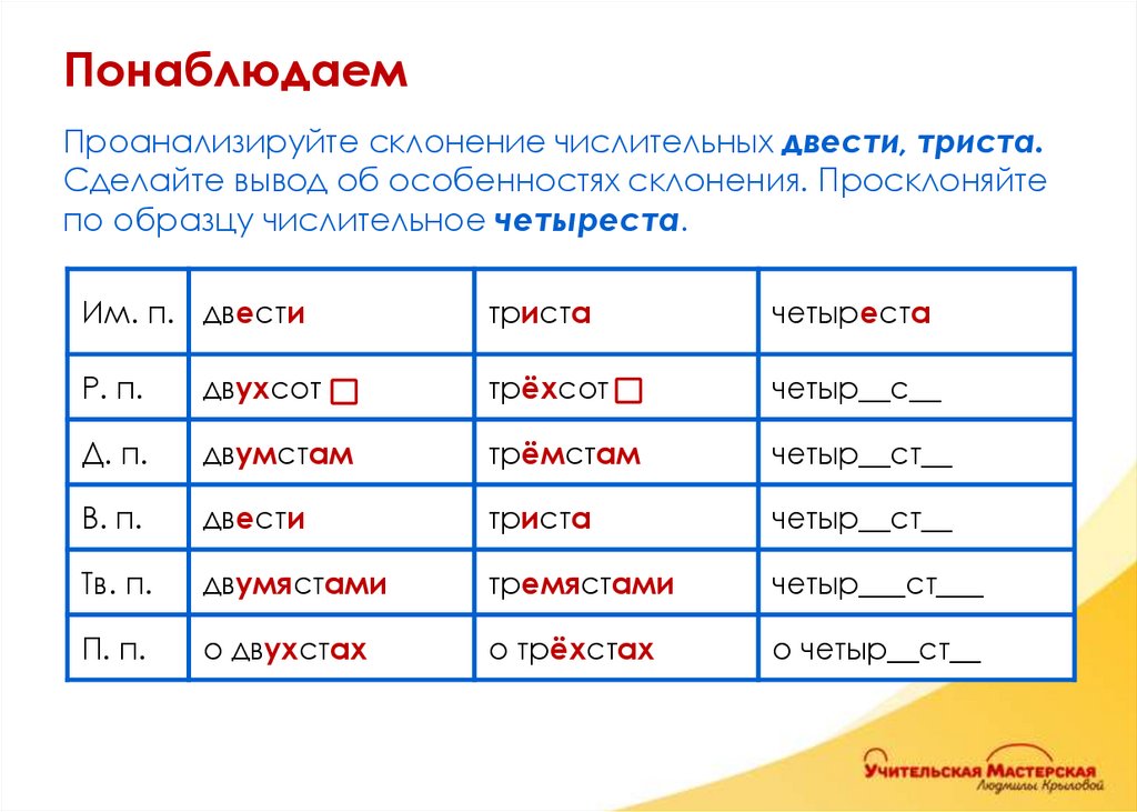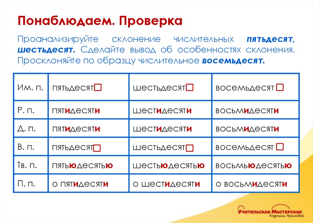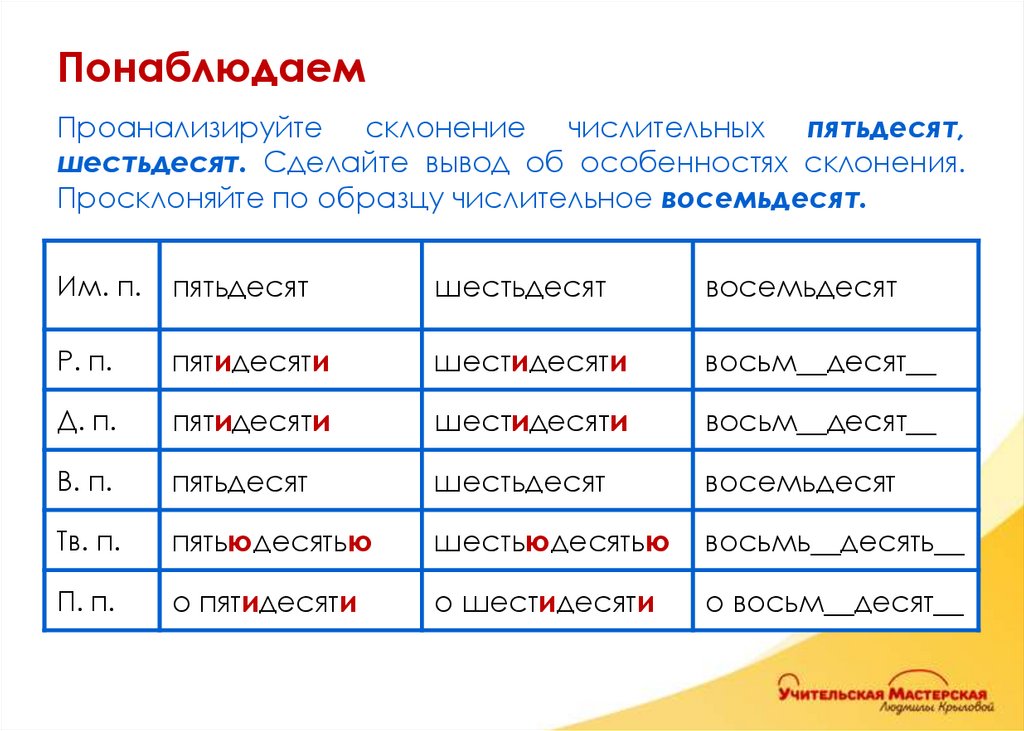 ПонаблюдаемПроанализируйте склонение числительных пятьдесят,