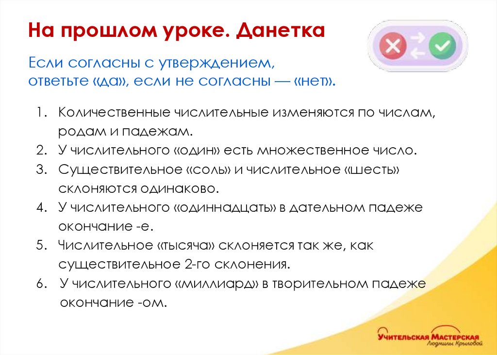 На прошлом уроке. ДанеткаЕсли согласны с утверждением,