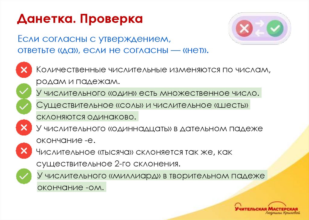 Данетка. ПроверкаЕсли согласны с утверждением,