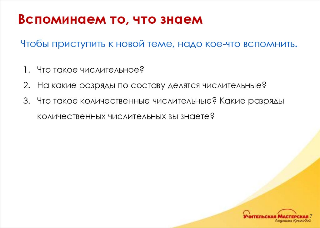 Вспоминаем то, что знаемЧтобы приступить к новой теме, надо кое-что вспомнить.
