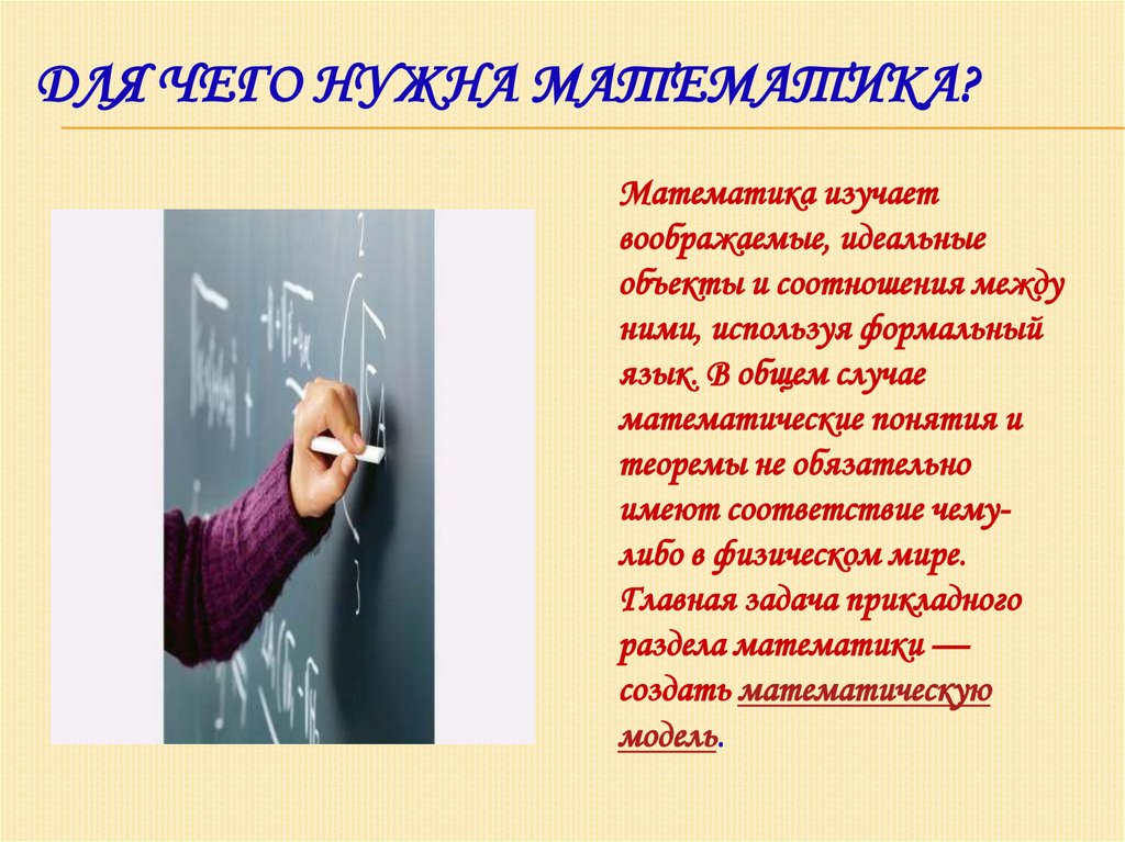 ДЛЯ ЧЕГО НУЖНА МАТЕМАТИКА?Математика изучает