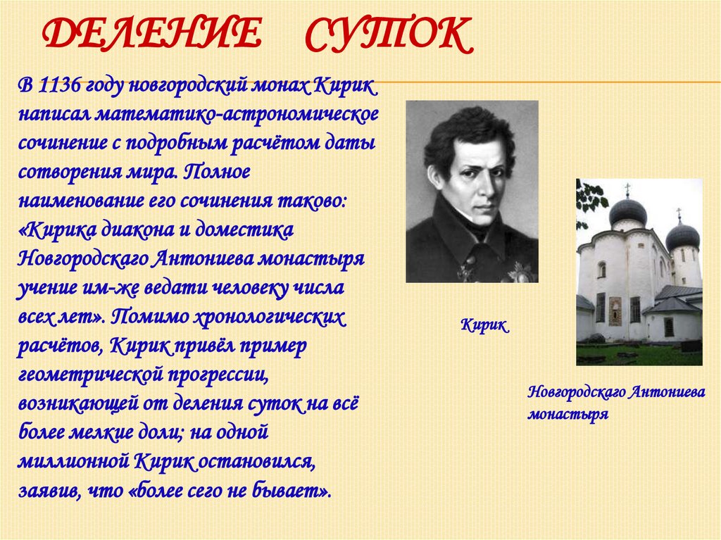 ДЕЛЕНИЕ СУТОКВ 1136 году новгородский монах Кирик