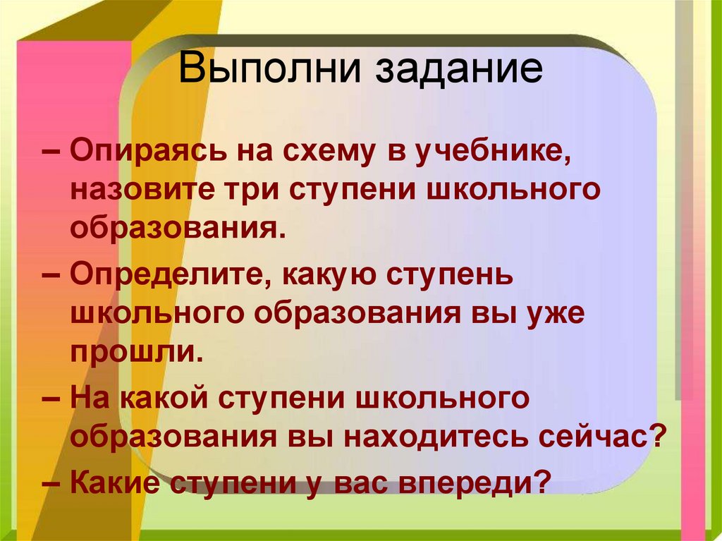 – Опираясь на схему в учебнике,назовите три ступени школьного