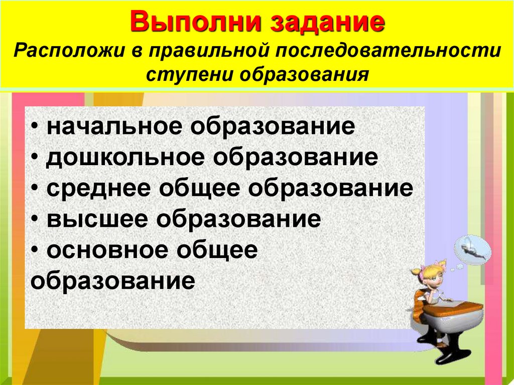 9. Выполни задание Расположи в правильной последовательности ступени образования