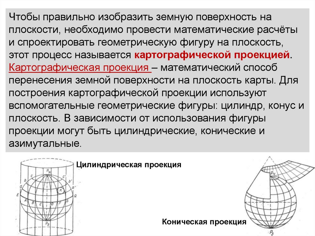 проекции могут быть цилиндрические, конические и