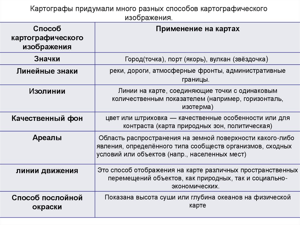 21. Картографы придумали много разных способов картографического изображения.
