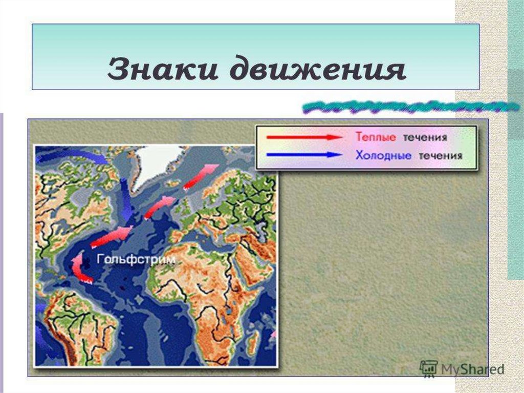 расположении материков и океанов, рек и гор дает