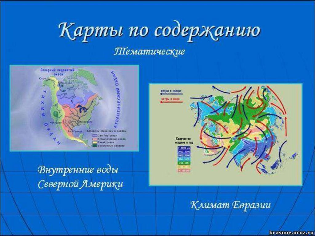 карты отдельных материков, океанов и их частей;