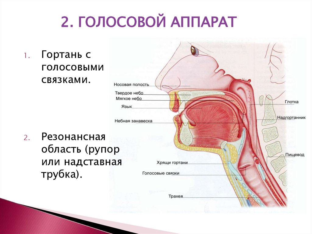 Строение речевого аппарата:1- головной мозг;