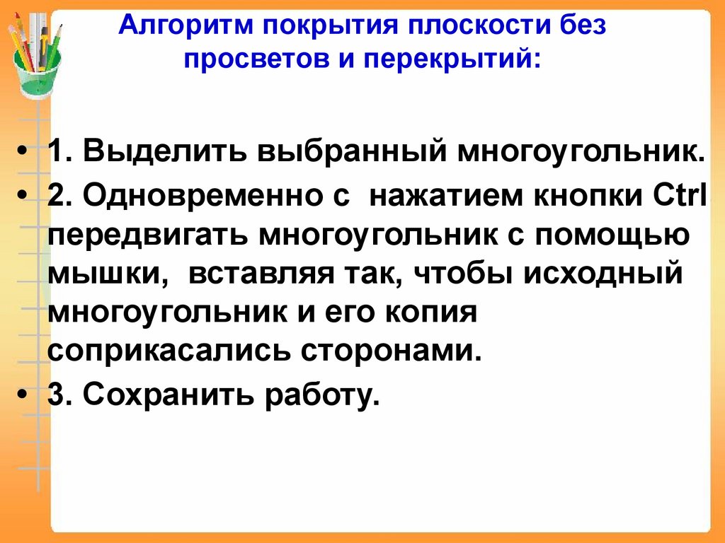 Алгоритм покрытия плоскости безпросветов и перекрытий: